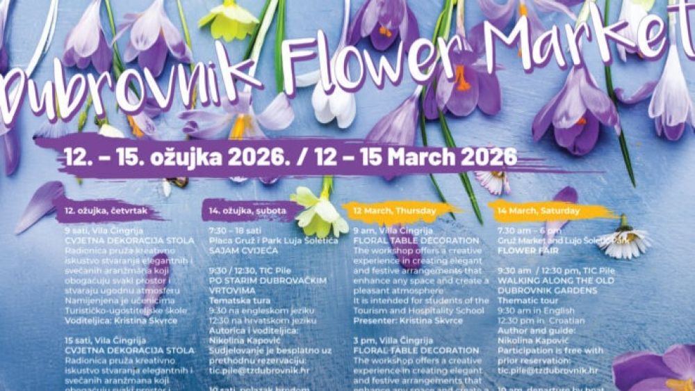 From March 12 to 15, Dubrovnik will once again host the Dubrovnik Flower Market, a colourful celebration of flowers, gardens and nature organised by the Dubrovnik Tourist Board.